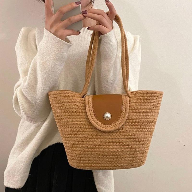 Versatile Cotton Rope Straw Woven Bag Bag Large Capacity High-grade Sense Nail Woven Bag Women's Vacation Beach Tote Bag