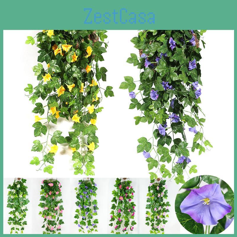 Lifelike Hanging Basket Artificial Flower Morning Glory Vine For Stunning Home Wall Decor