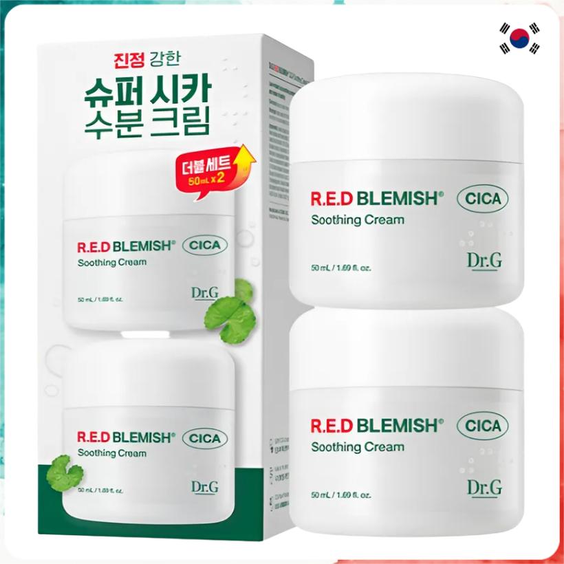Dr.G Red Blemish Cica Soothing Cream is a mild, hydrating cream formulated with multiple cica ingredients to soothe irritation, reduce redness, and restore moisture balance. Its soft, refreshing texture absorbs comfortably without stickiness, making it ideal for sensitive, acne-prone, or weakened skin. This 2-piece set offers reliable daily soothing care for maintaining calm, hydrated, and balanced skin.