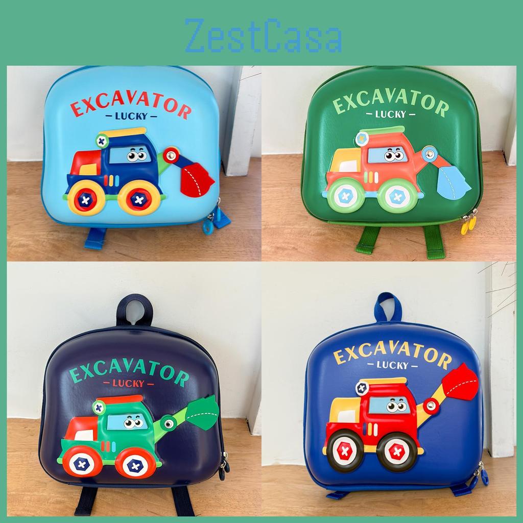 Cute Children's Backpack With Cartoon Excavator Print Lightweight And Breathable For Preschoolers