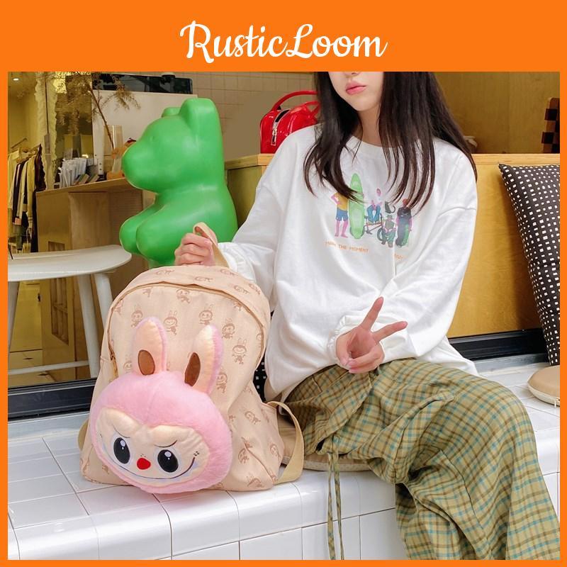 Cartoon Plush Backpack With Canvas Material And Adjustable Straps For Daily Use