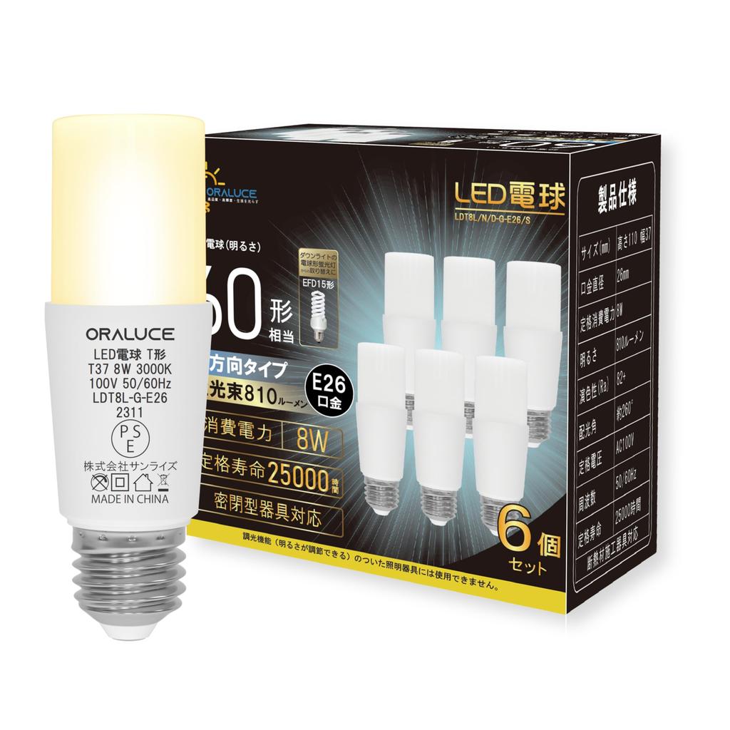 ORALUCE LED Light Bulbs, E26 Base, T-Shaped, 60W Equivalent, Warm White, 3000K, 8W, 810LM, Omnidirectional, Non-Dimmable, Compatible with Insulated