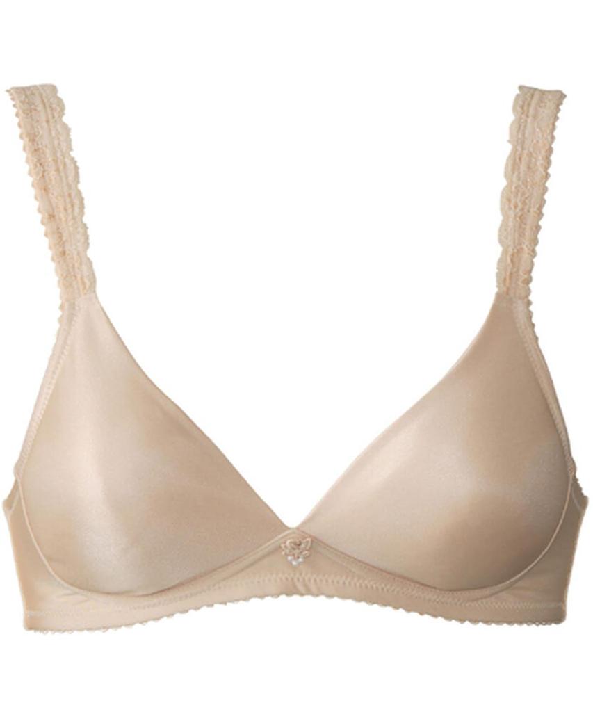 Gentle against the skin. The inner cup material is a cotton blend with silk protein processing. The sides and underside of the straps are made of stretchy cotton blend tape.