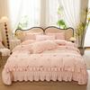 Thickened Milk Fleece Four-Piece High Gram Weight Embroidered Quilting Bed Cover Kit Lace Single Quilt Cover