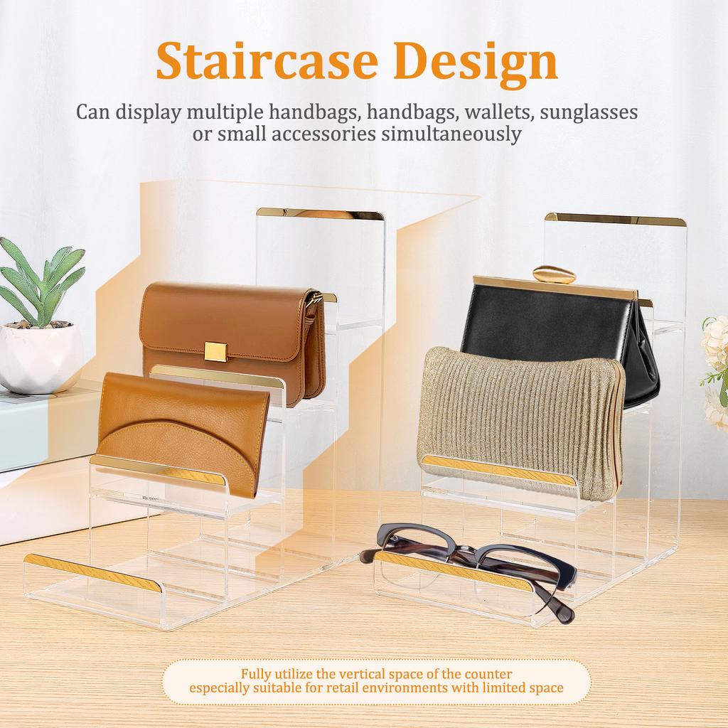 2 Pcs Acrylic Display Stand 3/4 Tier Wallet Display Stand Women Handbag Purse Display Shelf Jewelry Racks Makeup Storage Shelves