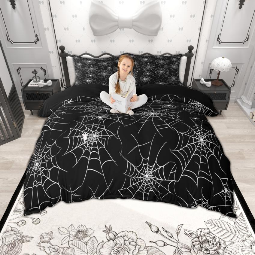 Homewish Spider Web Duvet Cover Set, Happy Halloween Theme Bedding Set, Reversible Comfoter Cover Set