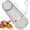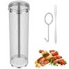 BBQ Basket Stainless Steel Rolling Grilling Basket Wire Mesh Cylinder Grill Basket Portable Round Outdoor Camping Barbecue Rack
