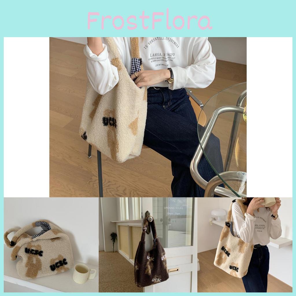 Stylish Plush Teddy Bear Tote Bag Soft Lambswool Large Capacity Everyday Purse