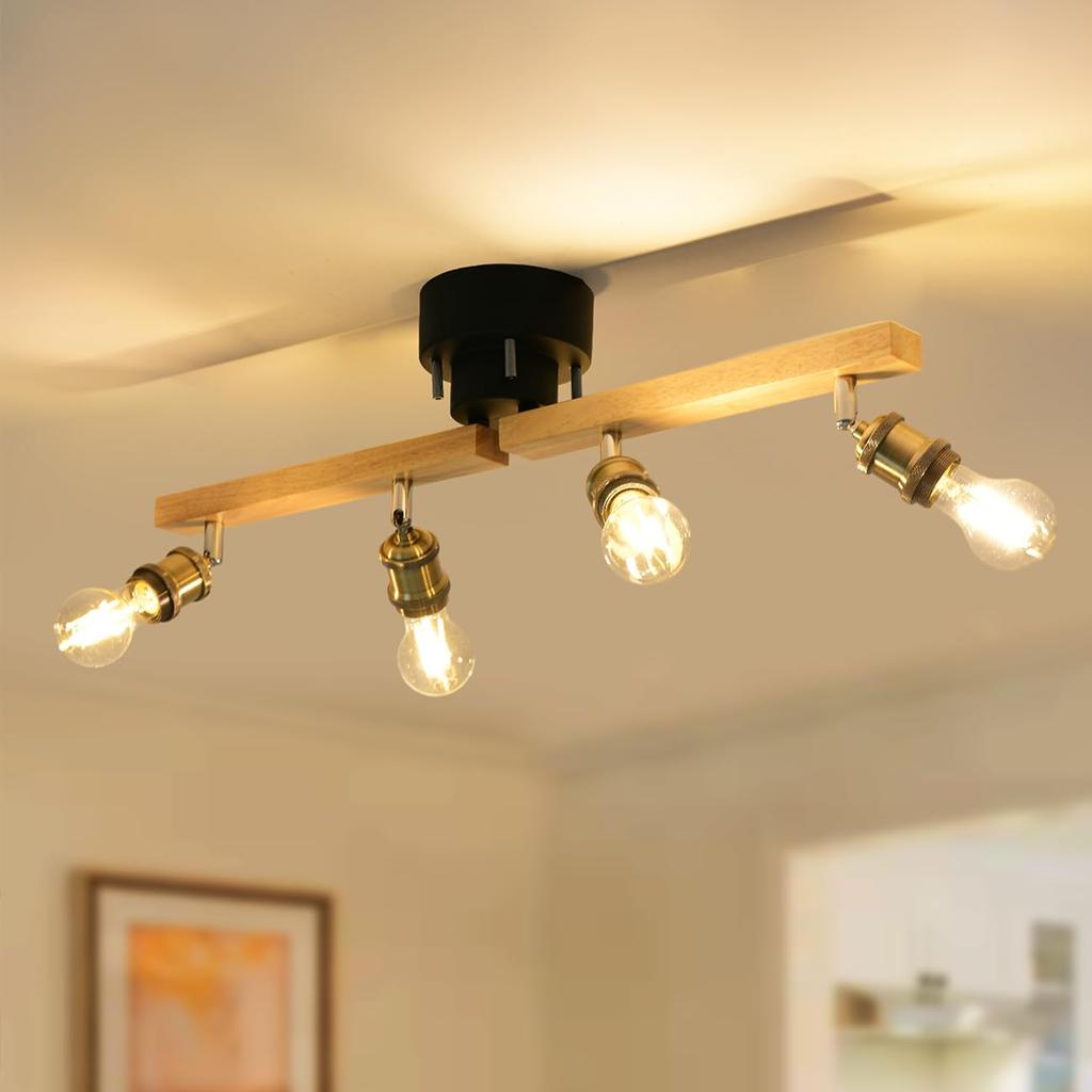 LVWIT 4-Light Pendant Ceiling Light with Dimmable and Color-Adjustable LED Bulbs (6W60W Equivalent), Wood Grain Finish, 806LM, Remote Control