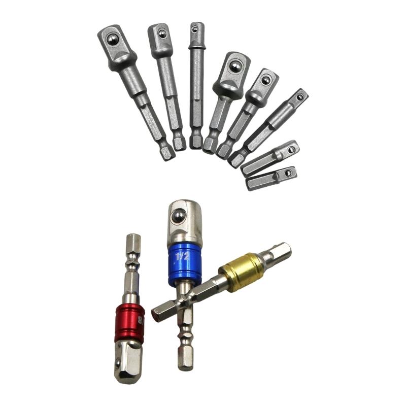 3/8Pcs Drill Socket Adapter Kit Impact Drill Extension Bit Socket Adapter Kit 1/4 3/8 1/2 Square Head Hex Shank Drill Tool
