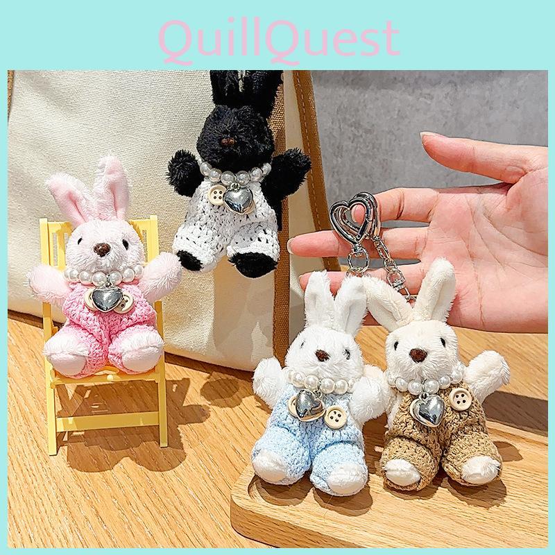 Adorable Handmade Plush Bunny Keychain With Pearl Chain For Stylish Accessory Lovers