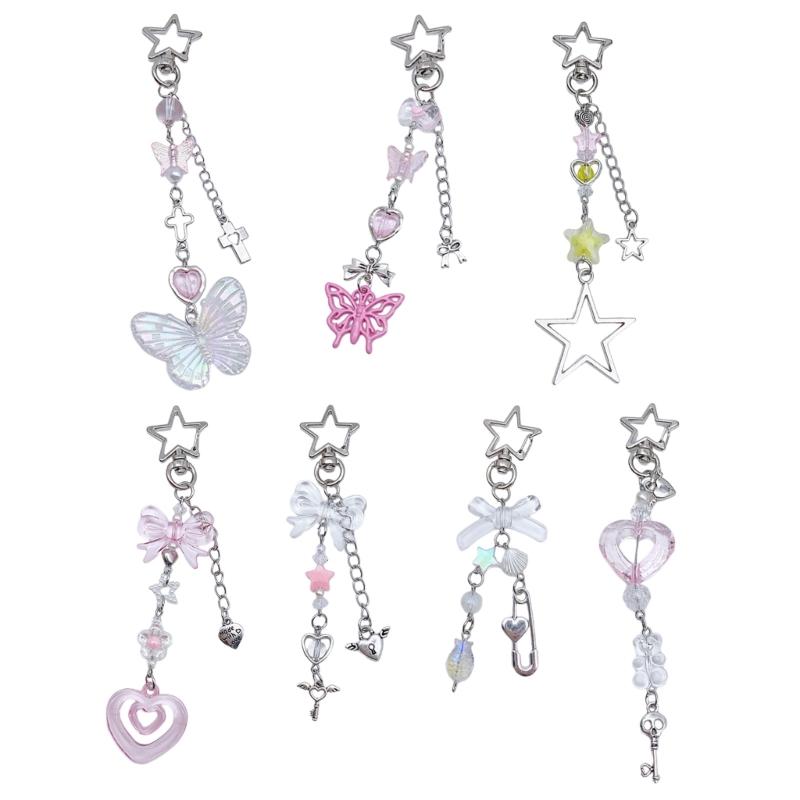 Butterfly Beaded Phone Lanyard Bowknot Pendant Wrist Strap Detachable Phone Chains Keyring Portable Accessory for Women