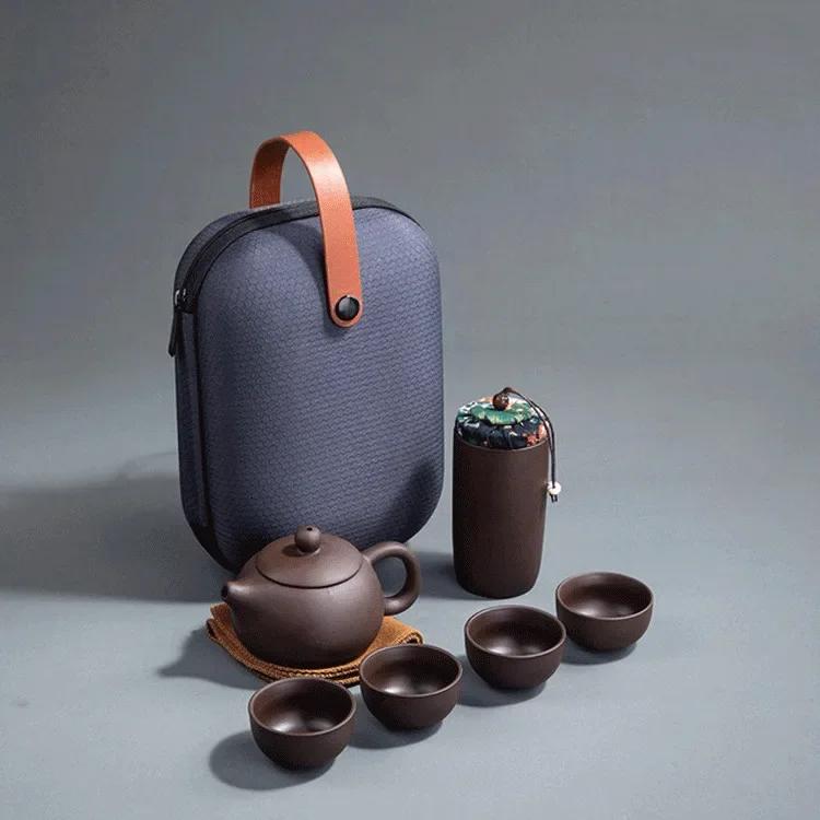 Portable Purple Clay Travel Tea Set One Pot Four Cups Kuaike Cup Kung Fu Tea Set Activity Gift Chinese TeaPot Set Household Tool
