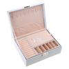 Keep your jewelry organized and secure with the jewelry box. This two layer box is made of quality PU, providing a stylish and durable storage solution for your rings, earrings, bracelets, necklaces, and watches.