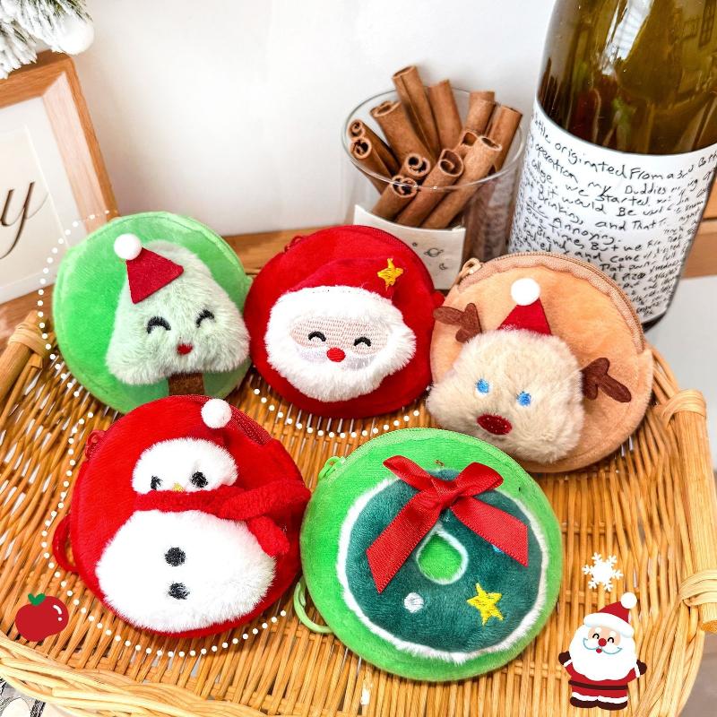 Cute Christmas Plush Coin Purse Kawaii Santa Claus Snowman Doll Coin Pouch Keychain Backpack Pendant Decoration Children Gift