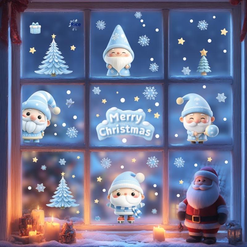 1/2/3/4/6/9 Sheets Winter Snowman Santa Claus Snowflake Static Electricity Decals Christmas Window Stickers Ornaments Xmas Decor