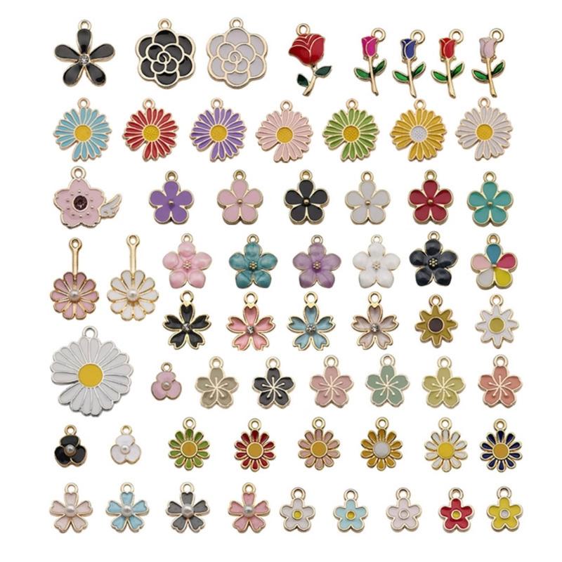 Set of 60 Flower Charm DIY Oil Drop Pendants Jewelry Making Supplies Alloy Material Perfect for Earrings and Necklaces