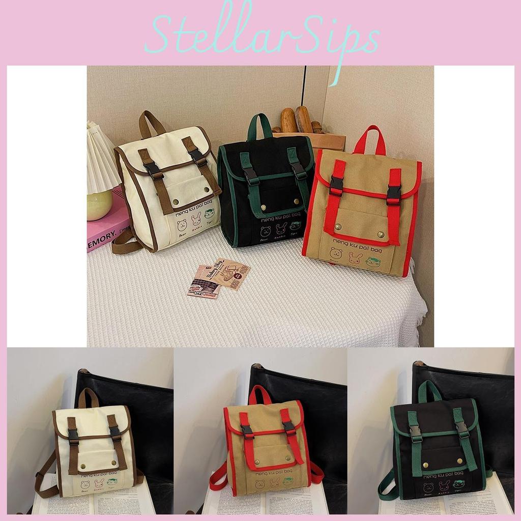 Charming Two-tone Canvas Backpack Featuring Playful Animal Designs For Kids