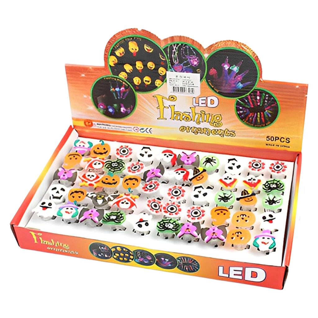 50PC Halloween Light Up Ring Party Toys Glow-in-the-Dark Rings Halloween Party Supplies for Trick or Treat Gifts