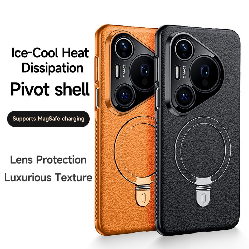 Heat Disspation 360 Rotatable Metal Stand Case For Huawei Pura 70 Ultra 80 Pro+ Plus Vegan Leather Cover Eco-Friendly Shell