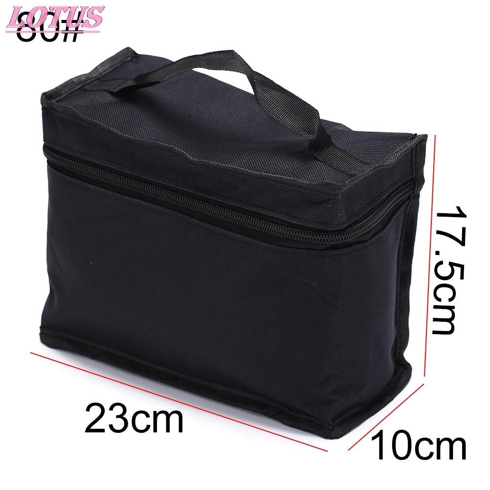 Folding Art Markers Zipper Canvas Storage Pencil Bag Hold 36/48/60/80pcs Markers Pen Large Capacity Zipper Black