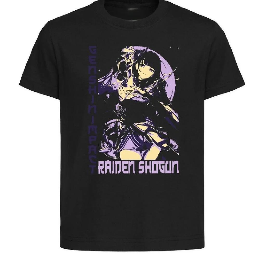Black Black Jersey Japanese Style Genshin Impact Raiden Shogun Unisex Clothing T-shirt