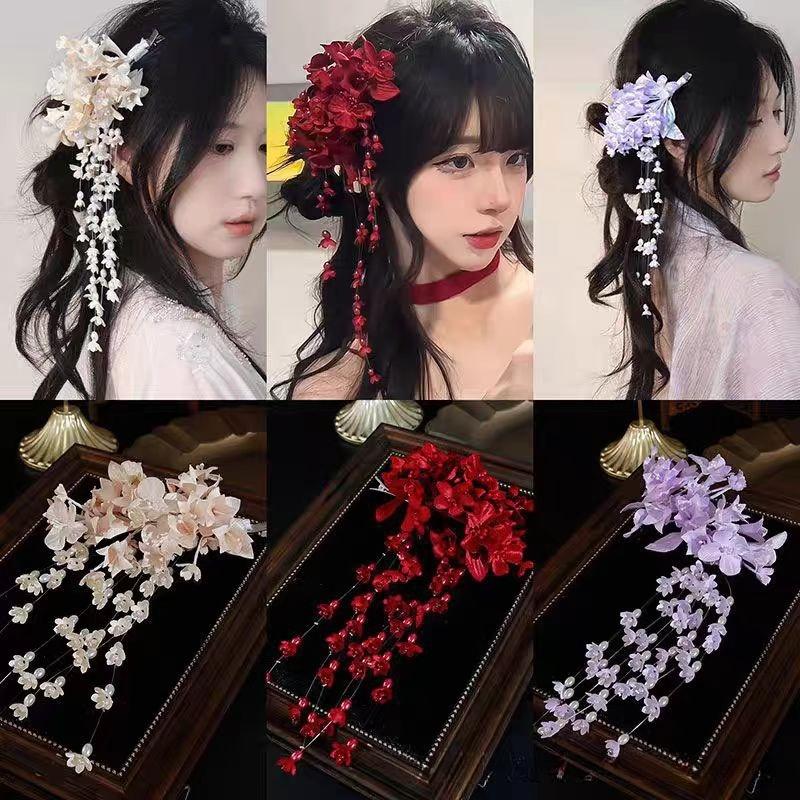 Super Fairy Lily Flower Tassel Hair Clip New Chinese Style Accessory
