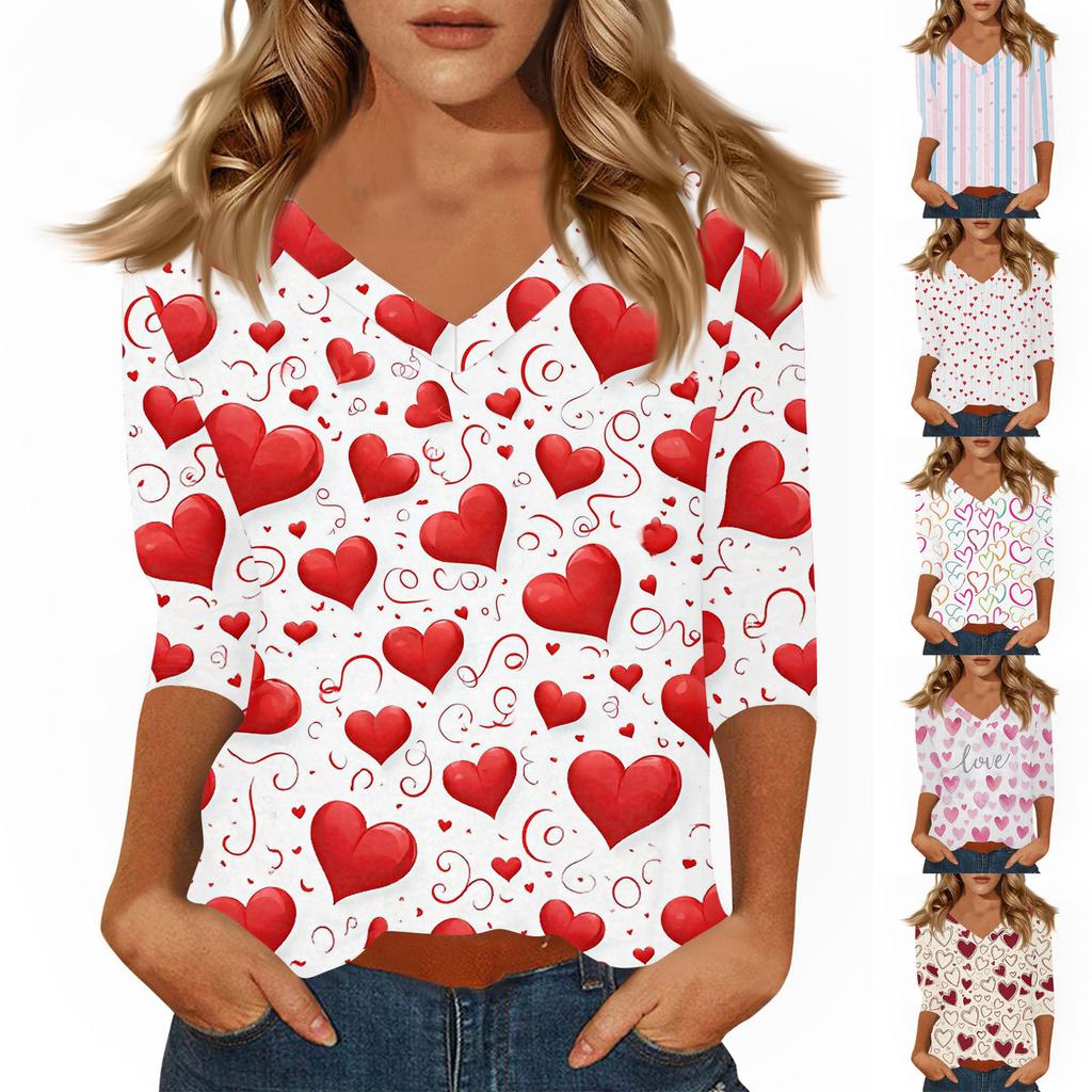 Women's T Shirt Print 3/4 Sleeve Daily Weekend Fashion Basic V- Neck Regular Top