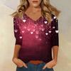 Women's T Shirt Print 3/4 Sleeve Daily Weekend Fashion Basic V- Neck Regular Top