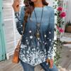 Women's Casual Plus SizeLong Sleeved Round Neck Vintage Ethnic Printing T-shirt Top Pullover