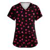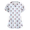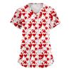 Women's Cute Bow Printed Work Clothes V-neck Double Layer Pockets Basic Short Sleeve Top Pullover