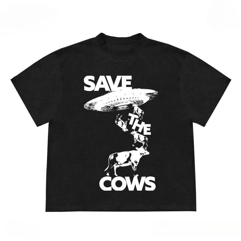 Save The Cows Graphic Unisex Cotton T-shirt Tee Casuai Short Sleeve Crewneck Top Fashion Streetwear Autumn Graphic T Shirts
