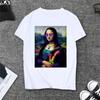 Summer Spoof Mona Lisa Drink Beer Print T Shirts Women Aesthetics Funny Casual Short Sleeves Tops Female Sleeved Harajuku