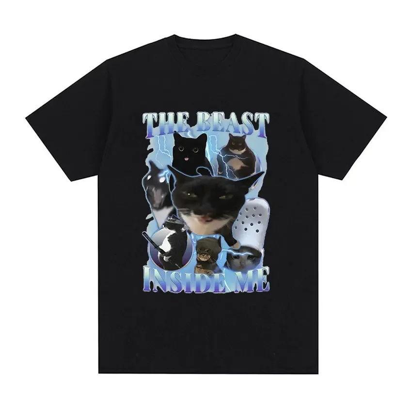 Men's Funny Cat Pattern Printed Short Sleeve Summer Casual Versatile Street Atmosphere T-shirt Cool Breathable Oversized Top