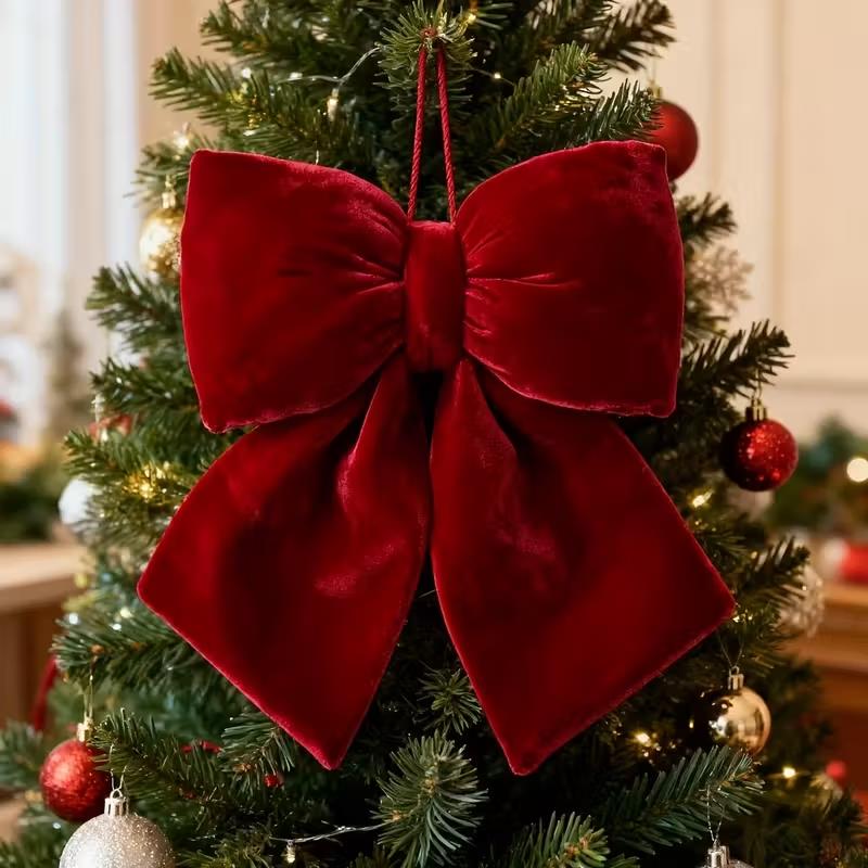 Large Red Velvet Bow Christmas Tree Hanging Pendants Christmas Party Decoration New Year Holiday Home DIY Ornaments