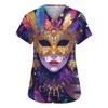 Women's Fashionable V-neck Workwear Printed Short Sleeved Pocket Side Slit Workwear Basic Pullover Top