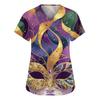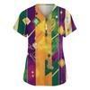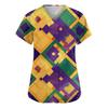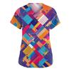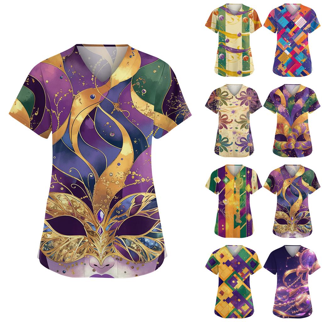 Women's Fashionable V-neck Workwear Printed Short Sleeved Pocket Side Slit Workwear Basic Pullover Top
