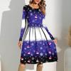 Women's Gradient Printed Casual Dress Spring Pocket Round Neck Long Sleeve Dresses