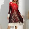 Women's Gradient Printed Casual Dress Spring Pocket Round Neck Long Sleeve Dresses