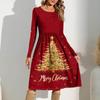Women's Gradient Printed Casual Dress Spring Pocket Round Neck Long Sleeve Dresses