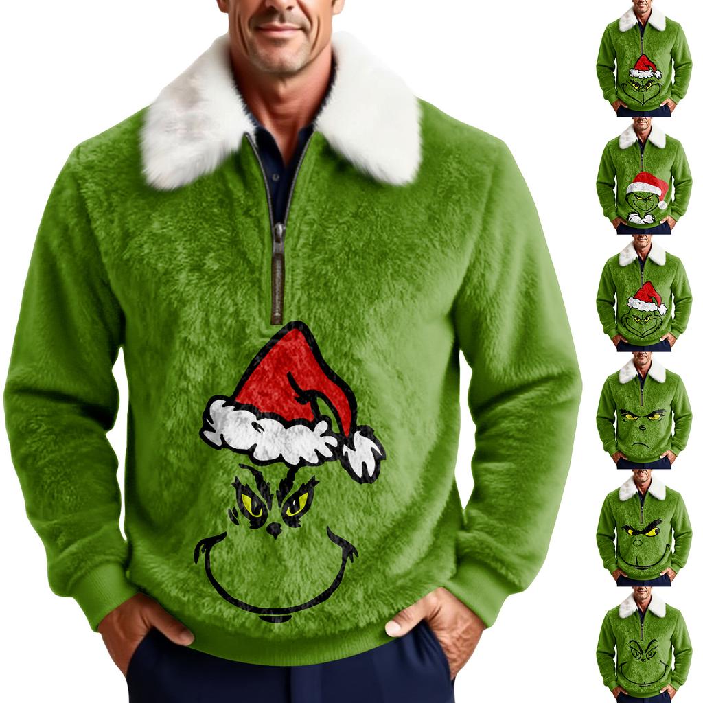 Men's Christmas Print Stand Collar Fleece Sweatshirt