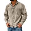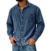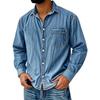 Men's Casual Solid Color Distressed Denim Shirt, Men's American Workwear, Retro Washed Long-sleeved Top
