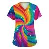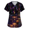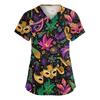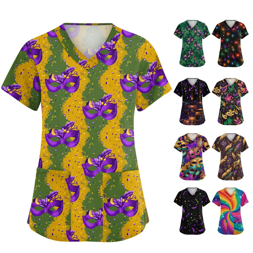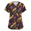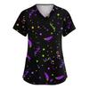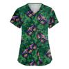 Women's Cute Printed Work Clothes V-neck Double Layer Pockets Basic Short Sleeve Top Pullover