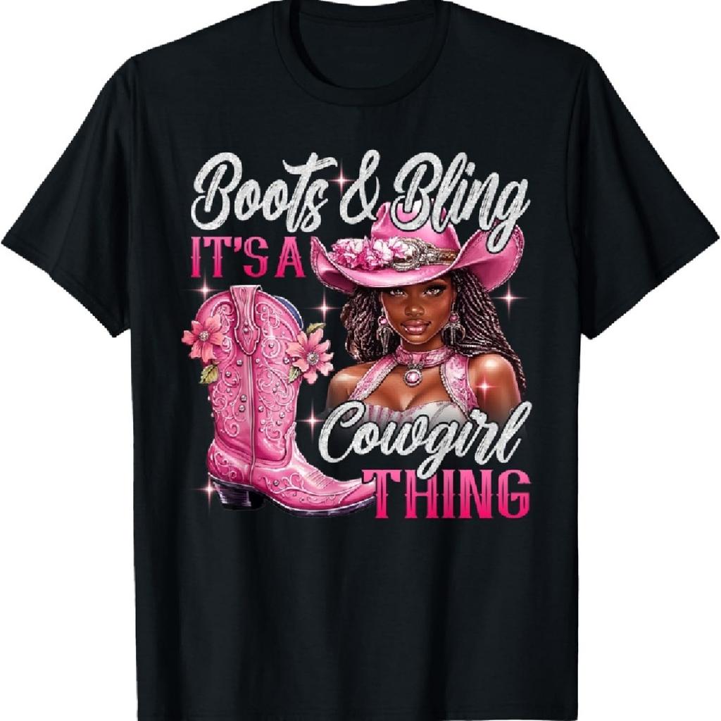 Boots & Bling Its a Cowgirl Thing Pink Black Cowgirl Melanin T-Shirt_1