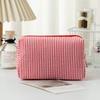Women Large Capacity Toiletry Bag Embroidered Striped Travel Cosmetic Storage Bag And Makeup Bag Seersucker Portable Handbag Storage