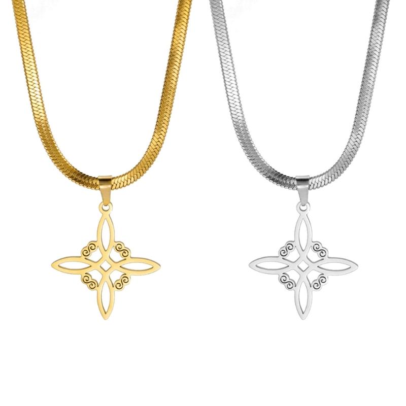 Witch Knot Snake Chain Necklace For Women Witchcraft Stainless Steel Choker Necklaces Vintage Amulet Jewelry Gift