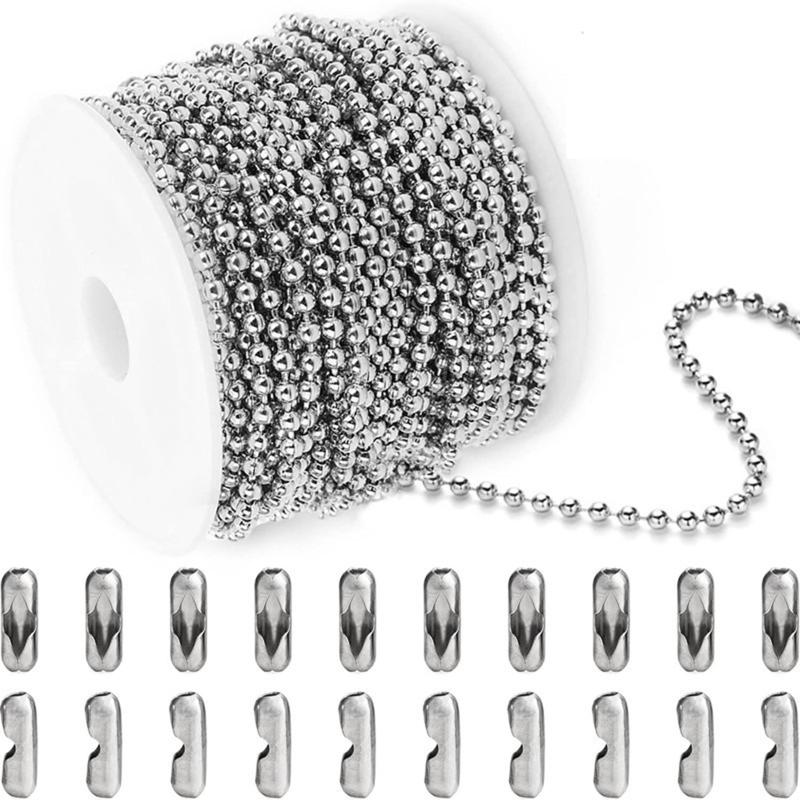 The diameter of the silver stainless steel ball chains beads is 2.4mm/0.09inch, which is very suitable for DIY jewelry supplies.