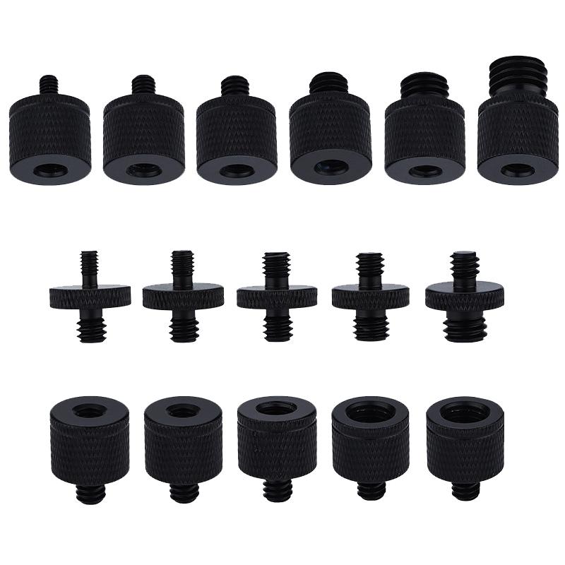 16 standard for your option: 1/4 female to M4- male, 1/4 female to M5 male, 1/4 female to M6- male, 1/4 female to M8- male, 1/4 female to M10 male, 1/4 female to male, 1/4 male to to M4- male, 1/4 male to to M5 male, 1/4 male to to M6- male, 1/4 male to to M8- male, 1/4 male to to M10 male, M4- female to 1/4 male, M5 female to 1/4 male, M6- female to 1/4 male, M8- female to 1/4 male, M10 female to 1/4 male.