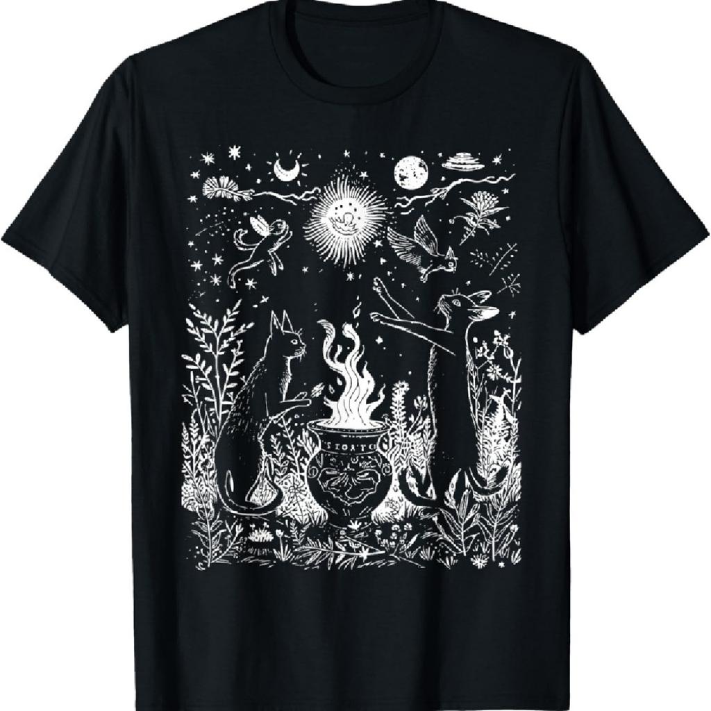 Celestial Cat Witch Shirt Cottagecore Weirdcore Art Goth T-Shirt