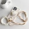 For IPhone 15 Rhinestone Pearl Love Stand Mobile Phone Case for IPhone 17 Pearl Hand Chain Crossbody Rope Silicone